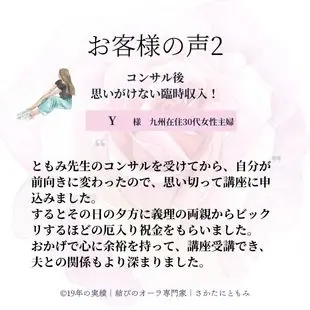 SNSで拝見する友美先生よりも、やはりリアルでお会いする友美先生の方が良いと思いました。エネルギーを感じて、自分自身を高めることができました。ありがとうございました。