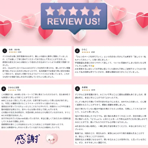 星5つの満点レビューをいただいている、私の自信作の動画講座はこちら