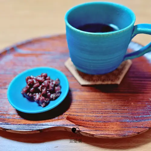 器は、沖縄の作家もの。ターコイズブルーに心が癒されます